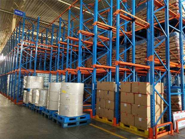 貫通式貨架:是一種不以通道分割,連續性的整體性貨架;貫通式貨架采用托盤存取模式、適用于存放品種單一,大批量的貨物;與托盤貨架相比、倉庫利用率可達到80%左右,倉庫利用空間率可提高30%以上,是存儲效率高的貨架。在支撐導軌上,托盤按深度方向存放,一個緊接著一個。投資成本相對比較低,適用于橫向尺寸較大,品種較少,數量較多,常用來儲存大批相同類型貨物,由于其存儲密度大對地面空間利用率較高,常用于冷庫、食品、煙草等存儲空間成本較高的倉庫。